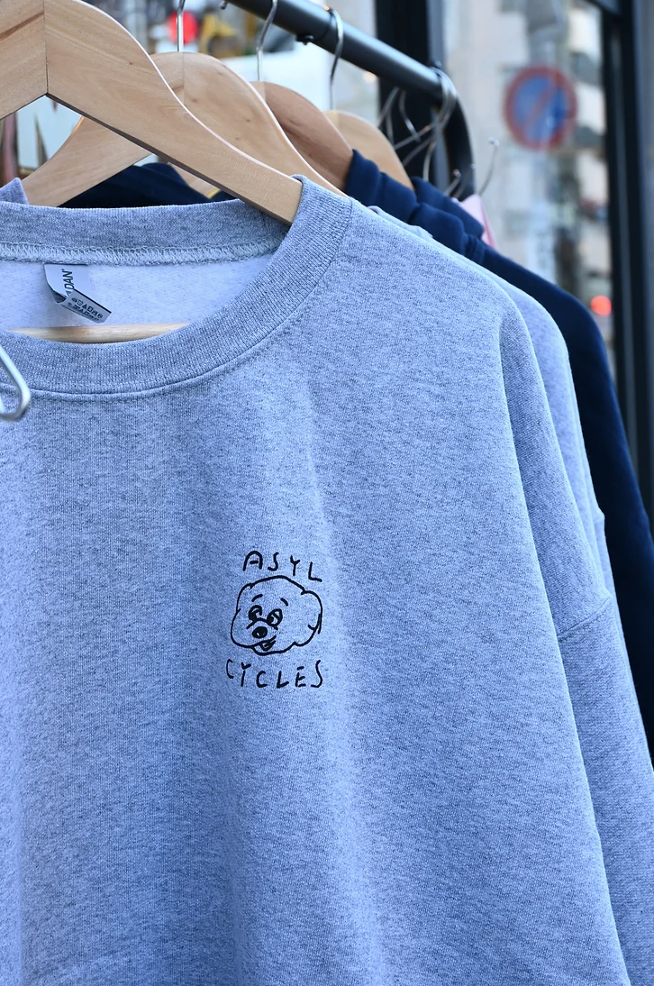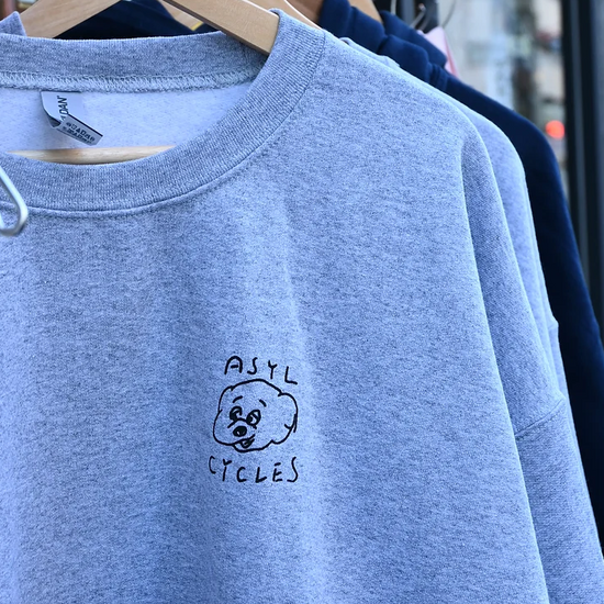 架空のバイシクルショップ"Asyl Cycles"のスウェットが登場。