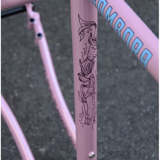 レースよりもパーティー。多くのCrust Bikesのモデルがそうであるように、BOMBMRAも自転車でのライドを楽しむためのモデルです。一日中林道を探検したり、行ったことのない場所まで走り続けたり、気軽にルートを外れて想定外のライドを楽しむのに最適です。汎用規格のフレームなので幅広い年式の部品で組み立てできるのもメリットで、乗り手のパーソナリティを反映した1台に仕上げることができます。