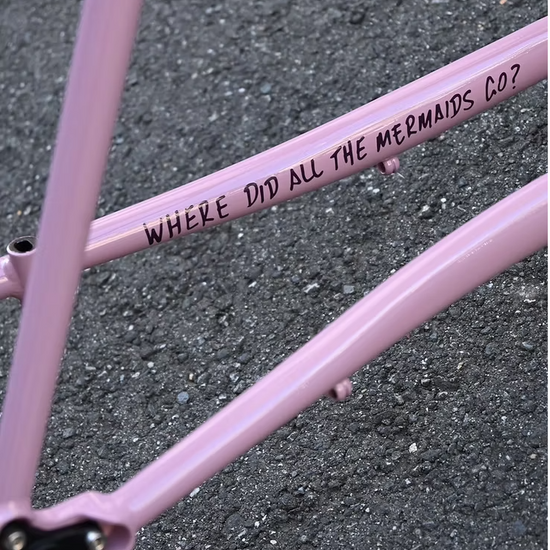 「WHERE DID ALL THE MERMAIDS GO?」 とフレームのチェーンステーに書かれているように、Mermaid=EVASION(エバージョンのヘッドパッチは人魚が描かれています)を置き去りにするような軽快さと、グラベルだけでなくオンロードのサイクリングやロングライド、軽量な装備のバイクパッキングなど様々な用途に使える汎用性の高さが魅力です。
