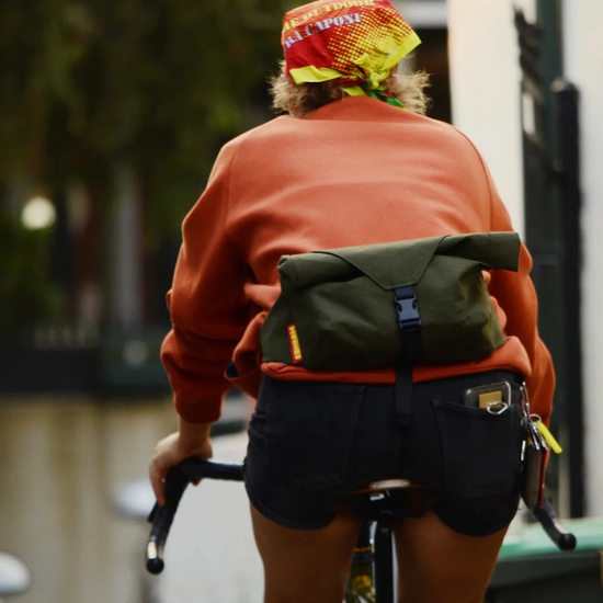 ウエストバッグにロールトップという選択が斬新ですね。