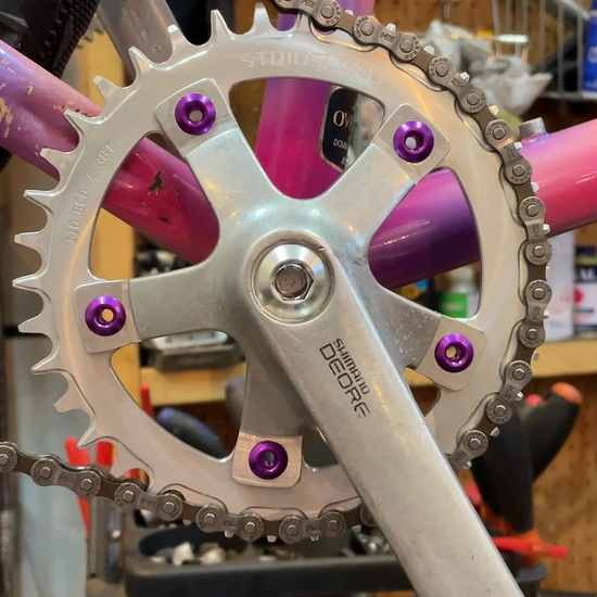 フレームのチェーンラインに合わせてアウターかミドルの位置にチェーンリングを取り付けて下さい。